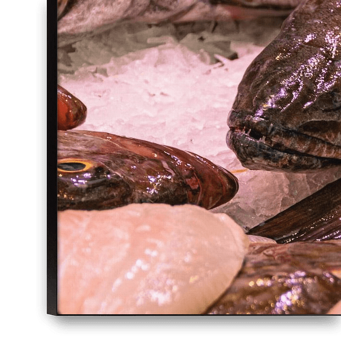 Bestelle dieses Stilleben Frischer Fisch im Mercado Central in Cadiz von Hans Verhulst als Reproduktion auf Leinwand, Alu-Dibond, als Poster, Fototapete oder Acrylglasbild.