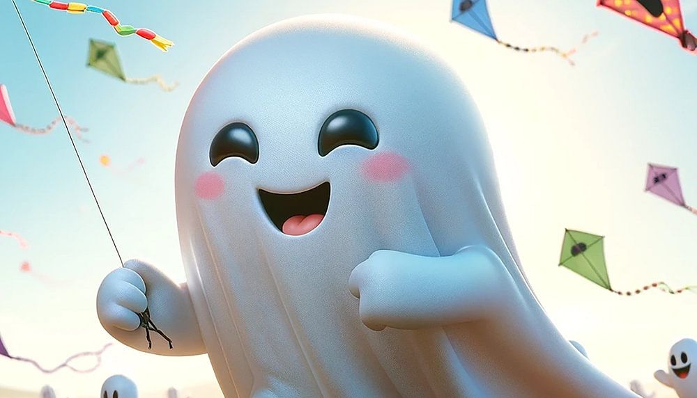 Über "Fröhliche Geisterfamilie lässt bunte Drachen steigen"