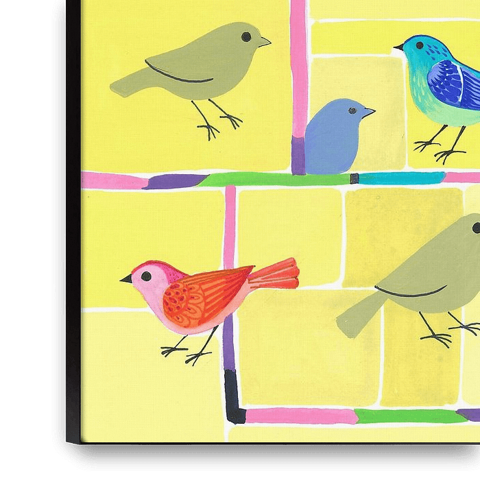 Bestelle dieses Vögel Wandbild Fröhliche Zwitscherer von Isabelle Brent als Reproduktion auf Leinwand, Alu-Dibond, als Poster, Fototapete, ArtFrame oder Acrylglasbild, maßgefertigt in höchster Qualität.