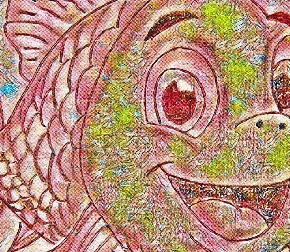 Eine Zeichnung eines glücklichen Fisches erstellt und digital bearbeitet.