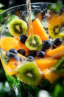 Saftige Fruchtstückchen tanzen in klaren Bläschen und verleihen einem erfrischenden Getränk Leben. Die leuchtenden Farben von Kiwi, Mango und Blaubeeren schaffen ein festliches Ambiente, das die Sinne anregt. Perfekt für die Küche, um Gäste zu inspirieren und den Raum mit einem Hauch von Frische und Vitalität zu erfüllen.