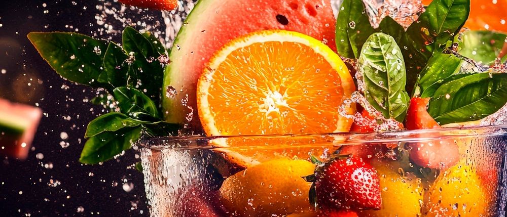 Lebendige Farben und spritzige Frische vereinen sich in einem faszinierenden Spiel aus Früchten, die energetisch in die Höhe spritzen. Die Kombination aus saftiger Wassermelone, sonnigen Orangen und schmackhaften Erdbeeren zaubert ein Gefühl von Sommer und Lebensfreude. Ideal für die Küche, bringt dieses Kunstwerk Freude und Inspiration in deine Kochmomente.