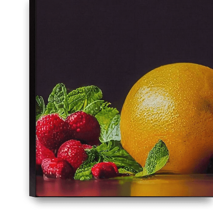 Ihre gewählte Kunst auf Leinwand, gespannt in einem Aluminiumrahmen. Schnell und einfach austauschbar für eine frische Ausstrahlung und ganz nach Ihren Wünschen.