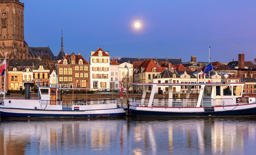 Deventer ist eine Hansestadt in Overijssel und liegt am Ufer des Flusses IJssel. Von der anderen Seite des Flusses hat man einen schönen Blick auf die Skyline der Stadt mit dem markanten Turm der Lebuinus-Kirche. Es ist meine Heimatstadt und ich kann mich nie an dieser schönen Skyline satt sehen. Das Licht ist immer anders. Dieses Foto wurde im Winter bei Vollmond von der Anlegestelle der Fähre aufgenommen, mit der man ins Stadtzentrum übersetzen kann.
