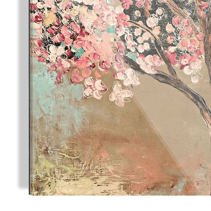 Gemälde mit Acrylfarbe auf Leinwand (größtenteils mit den Fingern gemalt) von einem Baum im Frühling, in voller Blüte! Wir freuen uns auf den Frühling, besonders in diesen turbulenten Zeiten! Ich habe den Hintergrund der Leinwand mit Goldpapier beklebt, so dass die Morgensonne schön durchscheint! den Frühling wieder genießen!