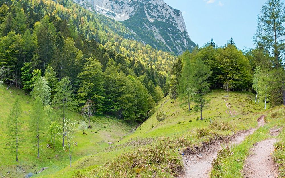 Frühlingslandschaft Mittenwald, Pfad am Ferchensee
