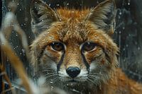 Lernen Sie den neugierigen Blick eines Fuchses kennen, der auf diesem schönen Schwarz-Weiß-Foto festgehalten ist. Perfekt für die Wand eines jeden Tierliebhabers!