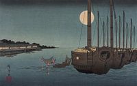 Fukeiga. Hiroshige. Japanische Kunst Ukiyo-e Landschaft mit Segelbooten. von Dina Dankers