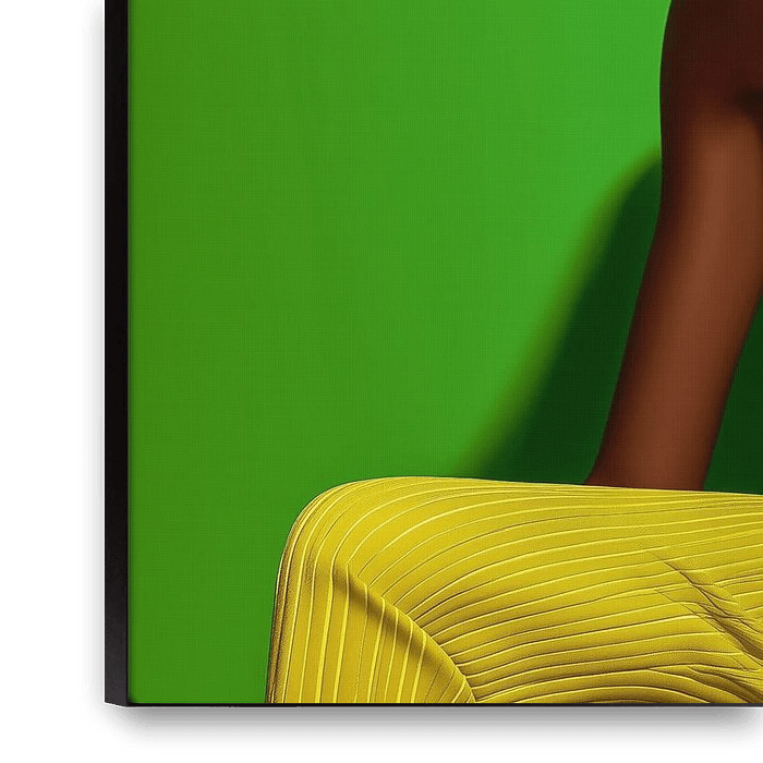 Fusion Emerald ist eine fotorealistische, digital erstellte Modefotografie, die die Energie von Grün und Gelb perfekt einfängt. Das Kunstwerk zeigt ein anmutiges Model in einem eleganten, gelben Outfit, während der Hintergrund komplett in einen satten smaragdgrünen Farbton gehüllt ist. Die Pose des Models ist raffiniert und…