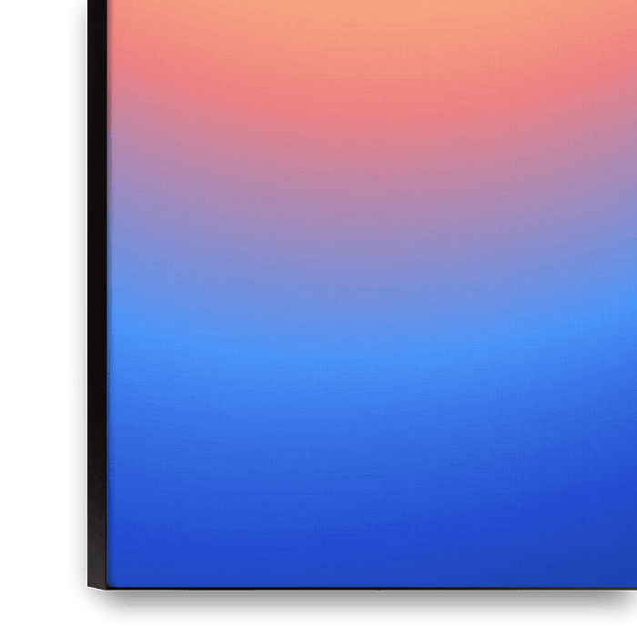 Ihre gewählte Kunst auf Leinwand, gespannt in einem Aluminiumrahmen. Schnell und einfach austauschbar für eine frische Ausstrahlung und ganz nach Ihren Wünschen.