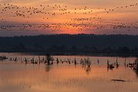 Wildgänse im Sonnenaufgang über dem Tister Bauernmoor.