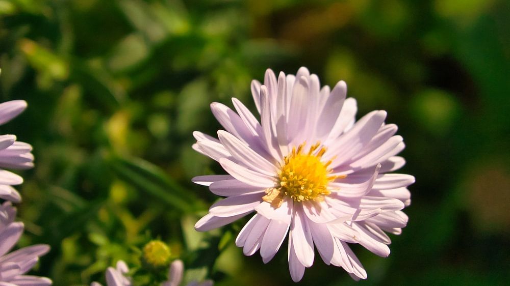Gänseblümchen auf einer grünen Wiese. Weiß rosa Blüten mit grünen Blättern. Frühsommer Blumen.
