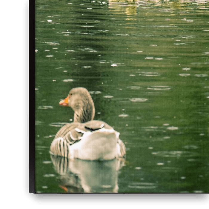 Bestelle das Foto Gänsefamilie mit Küken von Jeroen als Reproduktion auf Leinwand, Alu-Dibond, als Poster, Fototapete oder Acrylglasbild.