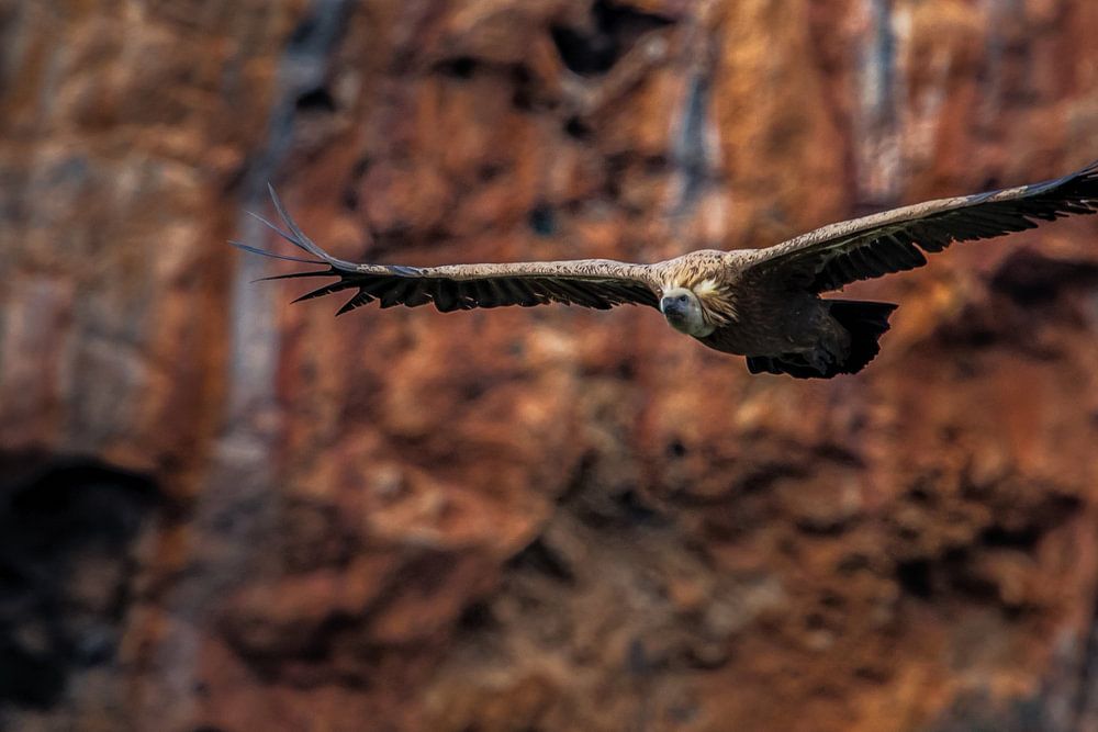 Gänsegeier vor einem roten Felsen in Andalusien In der Nähe von Casares in Spanien kann man in mehreren Reservaten große Kolonien von Gänsegeiern beobachten. Vor den roten Felsen bei Casares ist dies ein beeindruckender Anblick.