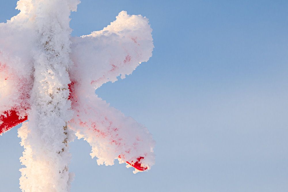 Diese Holzschilder sind oft als Wegweiser zu sehen oder zeigen an, wo genau der Weg verläuft. Wenn ein halber Meter Schnee liegt, ist es schwierig, den Weg anders zu finden.