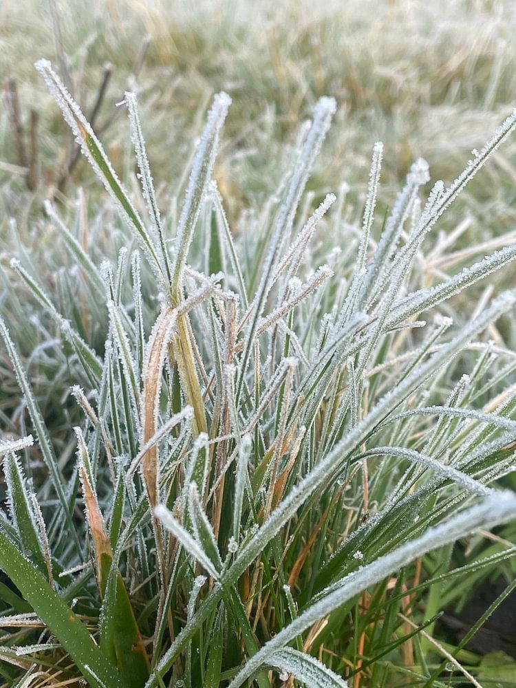 Gefrorenes Gras in Limburg. Das Foto wurde im März 2022 in den frühen Morgenstunden aufgenommen.