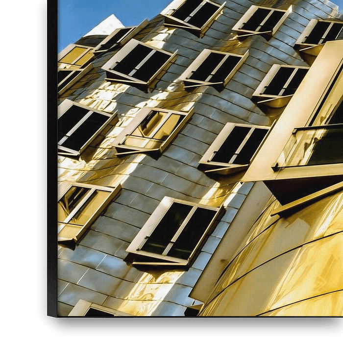 Bestelle dieses abstrakte Wandbild Gehry Bauten von Dieter Walther als Reproduktion auf Leinwand, Alu-Dibond, als Poster, Fototapete oder Acrylglasbild.