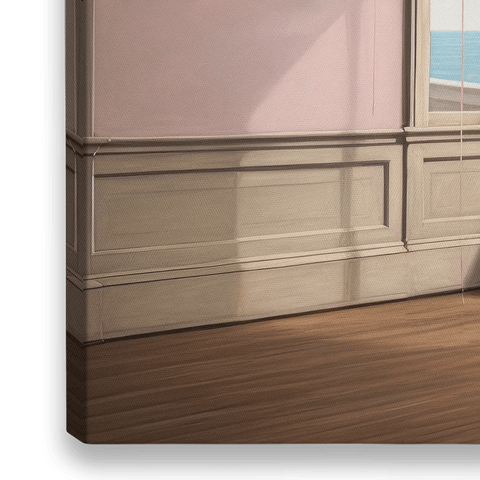 Das digitale Kunstwerk "Gelassenheit in Rosa" ist von den Werken Edward Hoppers inspiriert. Das Kunstwerk zeigt einen fast leeren Raum in einem alten Haus, in dem die schwebenden rosa Luftballons ein Gefühl von Verspieltheit und Freude hervorrufen. Der Blick auf das Meer draußen strahlt Ruhe und Gelassenheit aus. Das Kunstwerk…