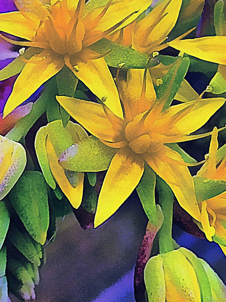 Die Gelbblühende Echeveria-Hybride ist eine meiner Lieblingssukkulenten, von denen ich mehrere in meinem Garten habe. Sie sind unglaublich widerstandsfähig und sehr leicht zu vermehren, weshalb ich so viele davon habe. Die gelben Blüten erscheinen im Frühjahr und bringen schon früh Freude in den Garten. Wie Sie sehen können, sind die kleinen Blüten recht filigran und hängen auf angenehme Weise in der Hand. Fotokunst.