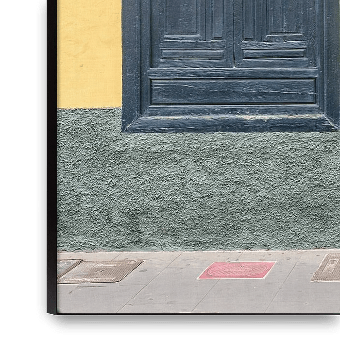 Bestelle das Foto Gelbes Stadthaus mit schwarzer Doppeltür von Alexander Baumann als Reproduktion auf Leinwand, Alu-Dibond, als Poster, Fototapete oder Acrylglasbild.