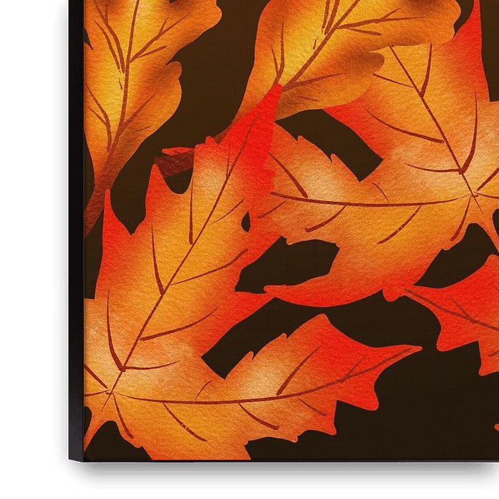 Ein warmes und gemütliches Gemälde zum Thema Herbst, das wunderschön verstreute Herbstblätter in Orange-, Rot- und Goldgelbtönen zeigt. Das Kunstwerk fängt die friedliche Atmosphäre der Herbstzeit mit sanften Texturen und natürlichen Farbtönen ein und schafft so ein beruhigendes und einladendes Bild. Dieses Poster eignet sich perfekt…