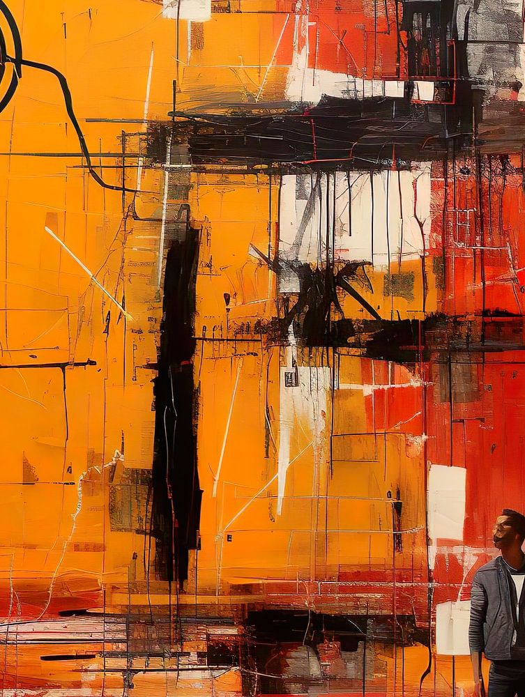 Ein Basquiat-Gemälde spritzt mit intensivem Ausdruck über die Leinwand. Abstrakte Symbole, leuchtende Farben und kraftvolle Linien bilden ein lebhaftes Gefühlschaos. Seine charakteristischen Kronen und stilisierten Texte verschmelzen zu einer einzigartigen Bildsprache. Das Werk wirkt wie eine spontane Eruption der Kreativität, ein poetischer Tanz zwischen Chaos und Ordnung, der typisch für Basquiats einzigartigen Stil ist.