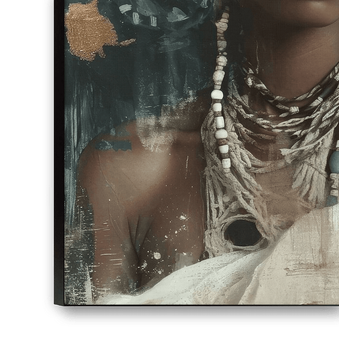 Gemischtes Medienporträt einer afrikanischen Frau. Wählen Sie die Größe und das Material für dieses Werk selbst und passen Sie es an Ihre Einrichtung an.