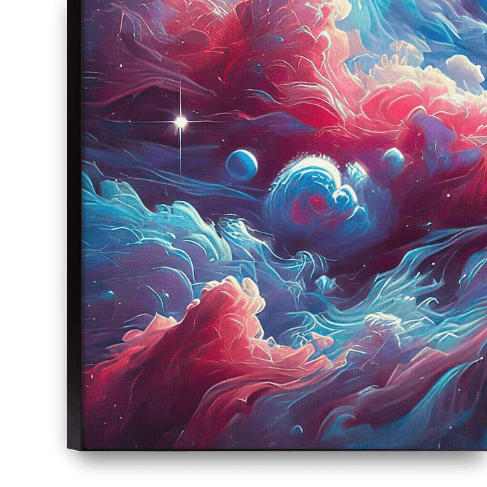 Ihre gewählte Kunst auf Leinwand, gespannt in einem Aluminiumrahmen. Schnell und einfach austauschbar für eine frische Ausstrahlung und ganz nach Ihren Wünschen.