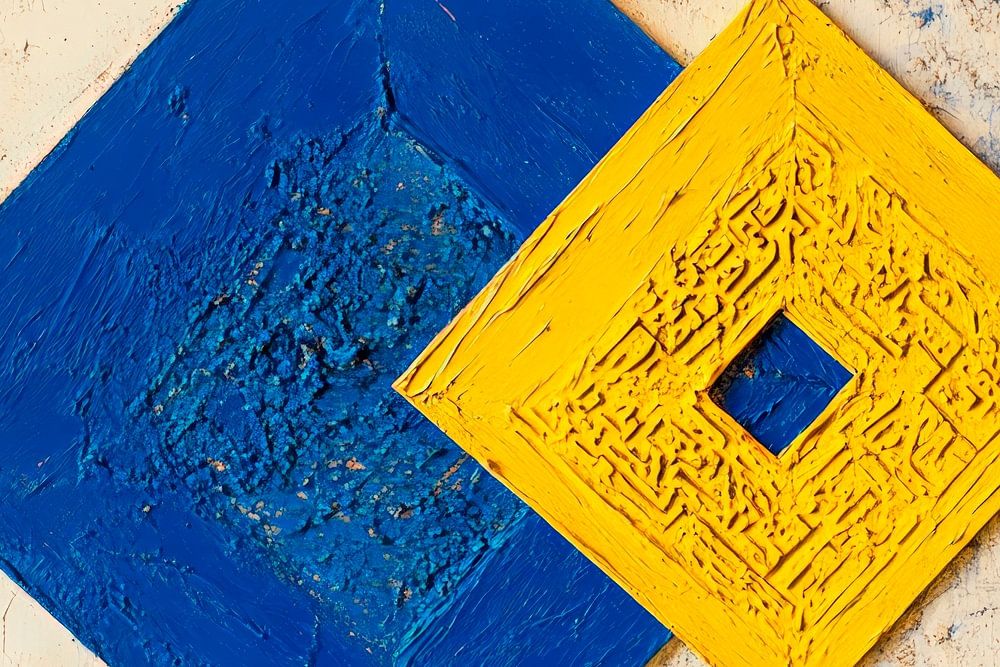 Ein faszinierendes Spiel aus tiefem Blau und strahlendem Gelb zieht alle Blicke an. Die geometrischen Formen scheinen miteinander zu tanzen und verleihen dem Raum eine lebendige Dynamik. Perfekt für das Wohnzimmer, um eine künstlerische Note zu setzen und inspirierende Gespräche zu entfachen. Ein Statement, das sofort begeistert!
