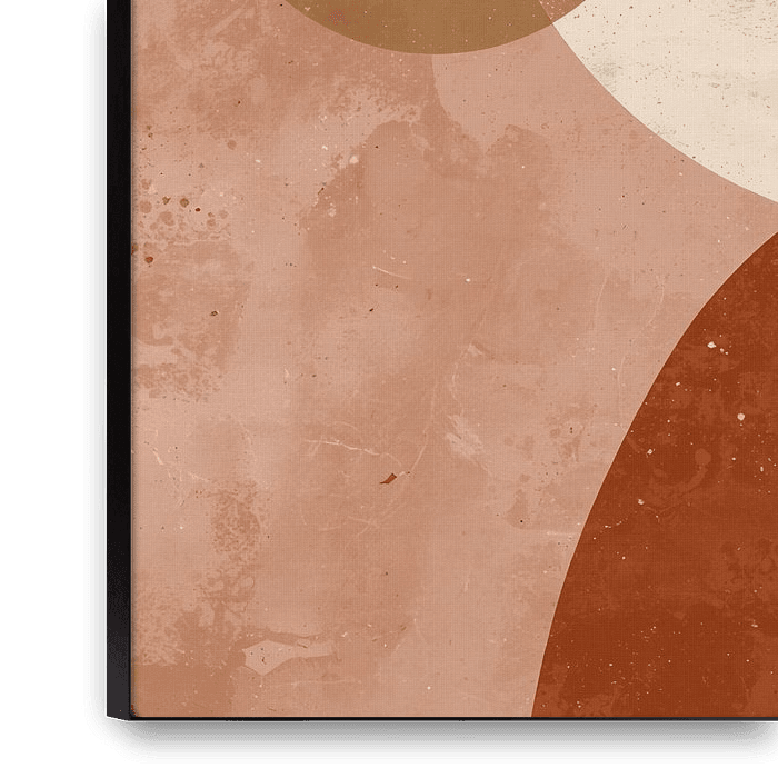 Strukturierte Kreise und klare Formen in warmen Terrakotta- und Cremetönen. Moderne abstrakte Ästhetik, die jedes Interieur stilvoll ergänzt.