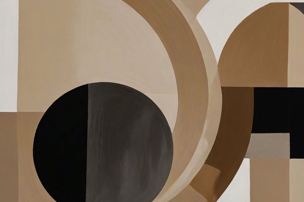 Dieses Kunstwerk ist ein Musterbeispiel für minimalistische Schönheit, perfekt für den modernen Ästheten, der subtile Komplexität in einer zurückhaltenden Farbpalette schätzt. Die sanften Beige- und Taupe-Töne harmonieren mit den starken Schwarz-Weiß-Kontrasten, in denen geometrische Formen zu einer faszinierenden Komposition verschmelzen. Sie setzt in jedem Raum ein stilvolles Statement, vom eleganten Wohnzimmer bis zum beruhigenden Schlafzimmer oder professionellen Büro. Die Ruhe und Ausgeglichenheit, die das Design ausstrahlt, schafft eine heitere Atmosphäre. Dieses Kunstwerk lädt zum Betrachten und Bewundern ein und verleiht jedem Interieur einen unverwechselbaren Charakter.