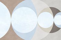 Abstrakte, minimalistische Kreise in Farben, die der blauen Flexa-Farbe des Jahres Bright Skies entsprechen. Die geometrischen Kreise haben den Goldenen Schnitt. Das Besondere daran ist, dass die beiden kleineren Kreise immer genau in den größeren Kreis passen.