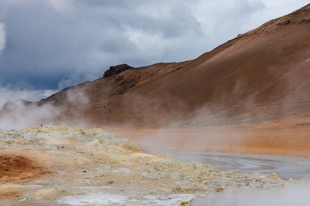Námaskarð / Hverir ist ein geothermisches Gebiet im Norden Islands, in dem viele dampfende heiße Quellen und kochende Schlammpools zu sehen sind.