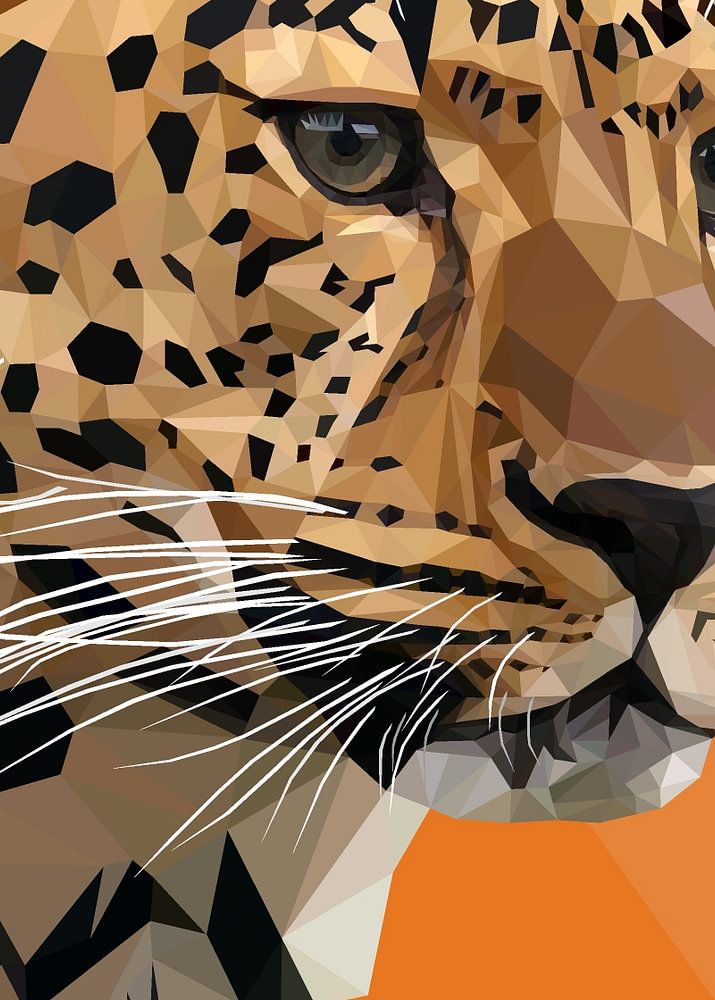 Hohe Qualität der Low-Poly-Illustration eines Tieres. Digitales Design der abstrakten Illustration mit Gruppe von Dreieck. Gepard in Low-Poly-Illustration mit Orange Hintergrund