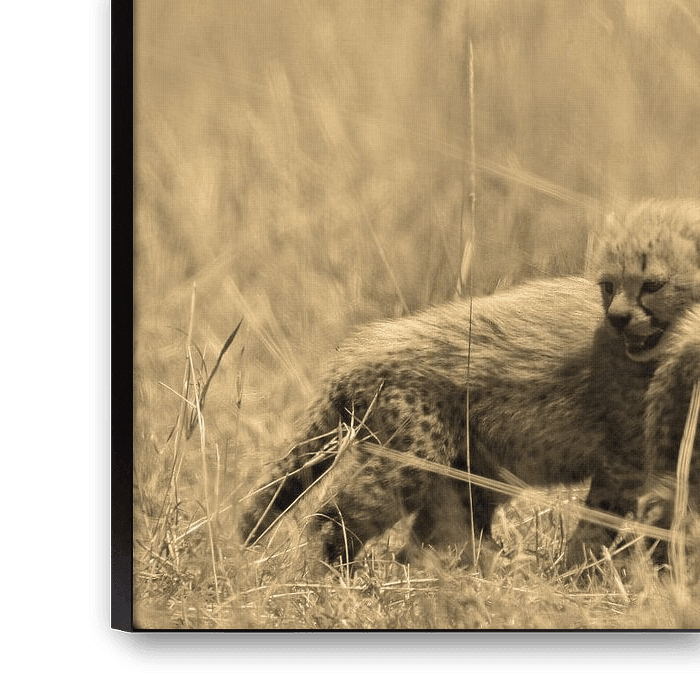 Ein Werk aus der Sepia-Kollektion von Roland Smeets. Hängen Sie Ihr ganzes Zimmer mit verschiedenen afrikanischen Tieren in beruhigendem Sepia auf und erleben Sie die nostalgische Kolonialatmosphäre der frühen Jahre, als Afrika und seine Tierwelt entdeckt wurden.