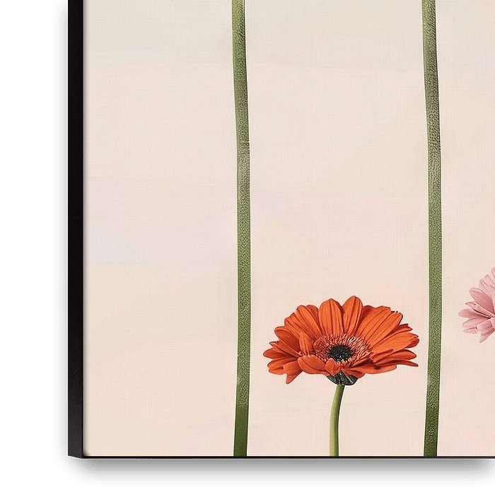 Dieses Kunstwerk zeigt Gerbera-Blumen in leuchtenden Farben vor einem sanften Pastellhintergrund. Die langen, schlanken Stängel und die zarten Blütenblätter verleihen diesem minimalistischen Kunstdruck eine elegante und erfrischende Ausstrahlung. Die Farbkombination aus Weiß, Rosa und Aprikose schafft eine ruhige und doch lebendige…