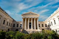 Bestelle das Foto Gerichtsgebäude Fassade mit Säulen von Dieter Walther als Reproduktion auf Leinwand, Alu-Dibond, als Poster, Fototapete oder Acrylglasbild.