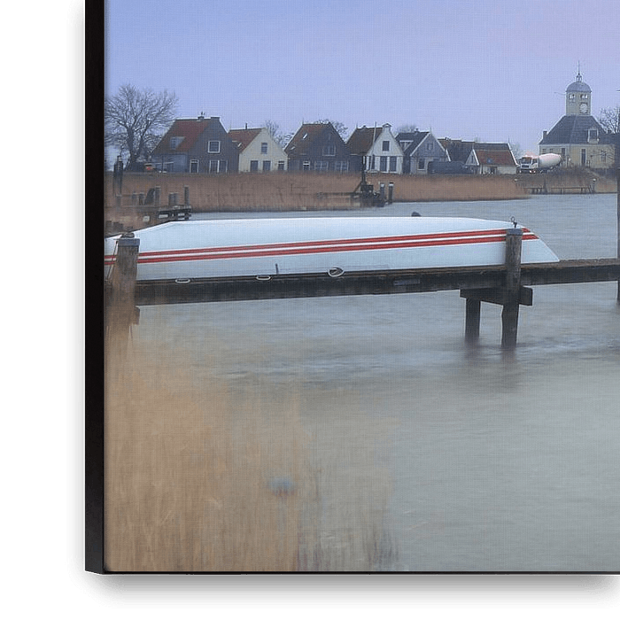Bestelle dieses Landschafts-Wandbild Gerüstbau mit Blick auf Durgerdam von Klaas Hollebeek als Reproduktion auf Leinwand, Alu-Dibond, als Poster, Fototapete oder Acrylglasbild.