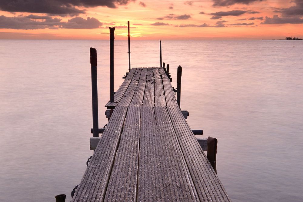 Gerüste bei Sonnenaufgang am IJsselmeer