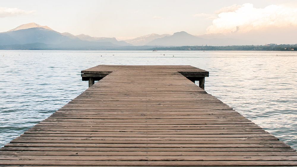 Eine Anlegestelle mit Blick auf den Gardasee von Peschiera del Garda