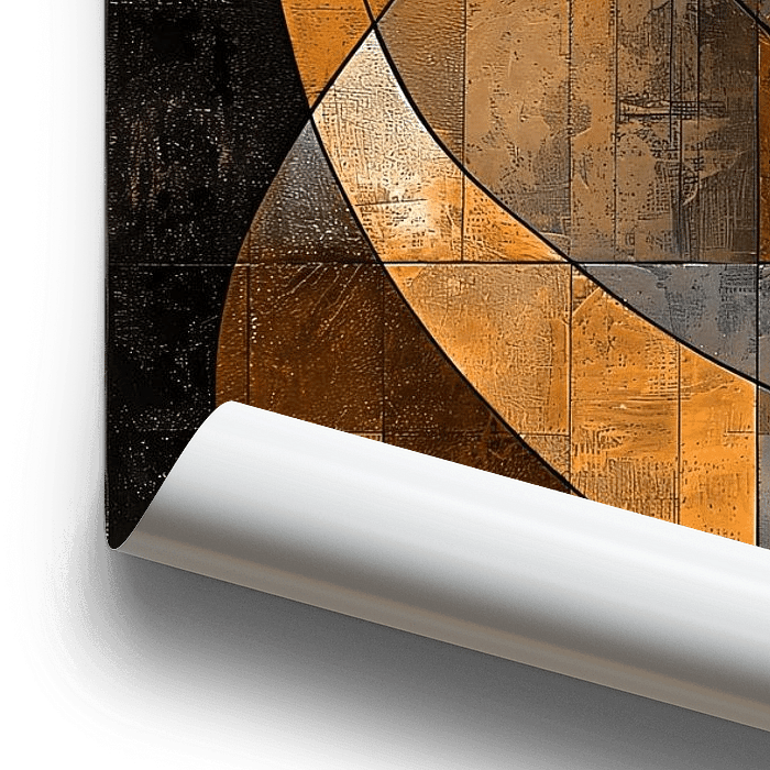 Abstraktes Profilporträt einer Frau mit geometrischen Formen und gedämpften Gold- und Erdtönen.