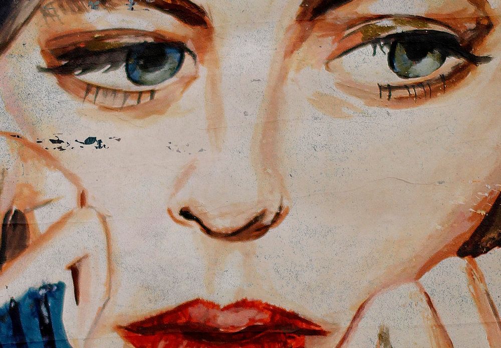 Ausschnitt des Gesichts. Technik; Aquarell kombiniert mit Ölfarbe.