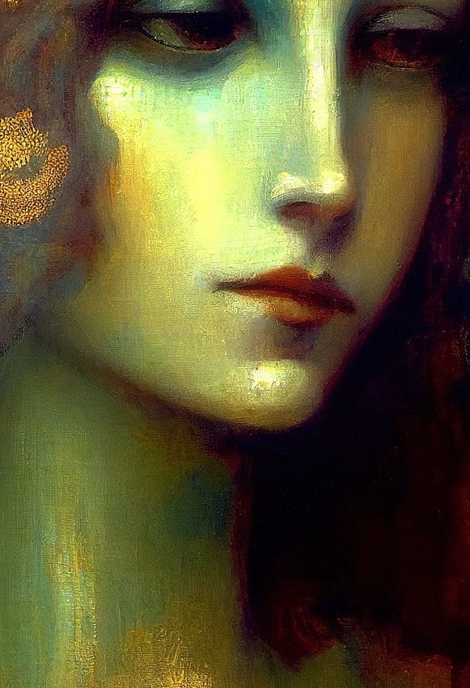 Gesicht eines Mädchens in Grün- und Orangetönen