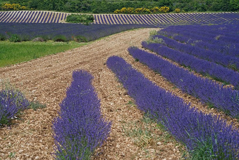 Gewelltes lilafarbenes Lavendelfeld in der französischen Provence in brillanten Bahnen.