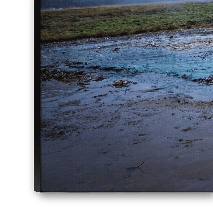 Dieses geothermische Gebiet ist kochend heiß. Das Wasser dampft und kocht. Die grünen und türkisen Farben des Wassers kommen vom Schwefel. Eine wirklich schöne Farbpalette mit einem bewölkten Himmel und schneebedeckten Bergen im Hintergrund.