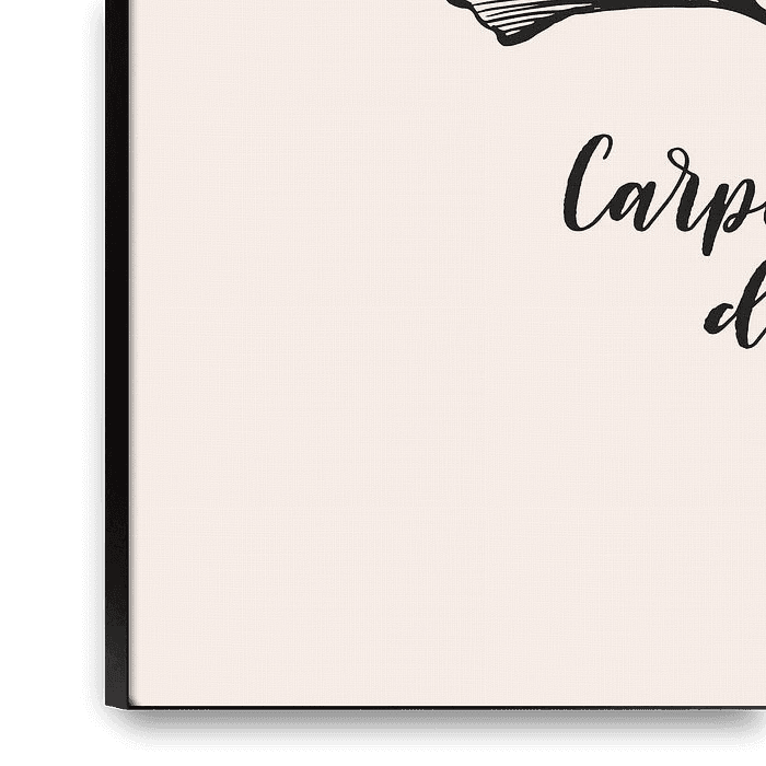 Schwarzweiße Strichzeichnung eines Blattes des Ginkgo biloba, eines Heilbaums aus China. Mit dem anmutigen Text "Carpe diem", oder "pluck the day". Einfach und natürlich im Vintage-Stil.