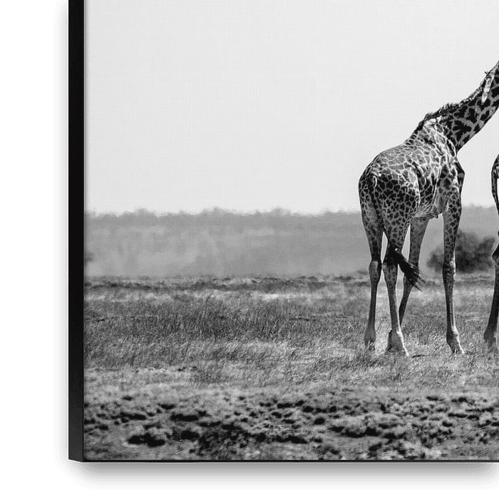 Bestelle dieses Landschafts-Wandbild Giraffen in der Savanne von Maaike van Schie als Reproduktion auf Leinwand, Alu-Dibond, als Poster, Fototapete oder Acrylglasbild.