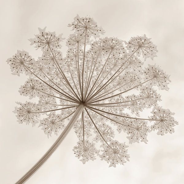 Bestelle dieses Blumen-Wandbild Girlande aus Riesenbärenklau in Sepia 1 von Jaap Tanis als Reproduktion auf Leinwand, Alu-Dibond, als Poster, Fototapete oder Acrylglasbild.