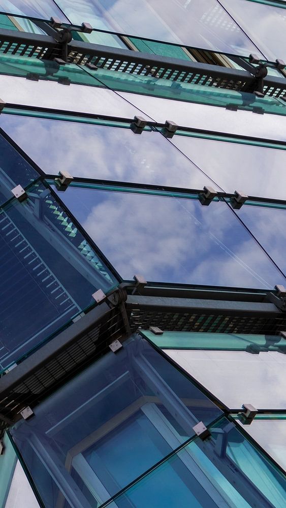 Das Kunstwerk „Glasfassade am Potsdamer Platz“ zeigt die moderne Architektur eines Berliner Gebäudes, dessen Fassade vollständig aus geometrisch angeordneten Glasplatten besteht. Die klaren Linien der Metallrahmen strukturieren die Fläche, während sich Himmel und urbane Umgebung in den spiegelnden Glasflächen brechen. Diese Reflexionen erzeugen ein Wechselspiel aus Realität und Abstraktion.