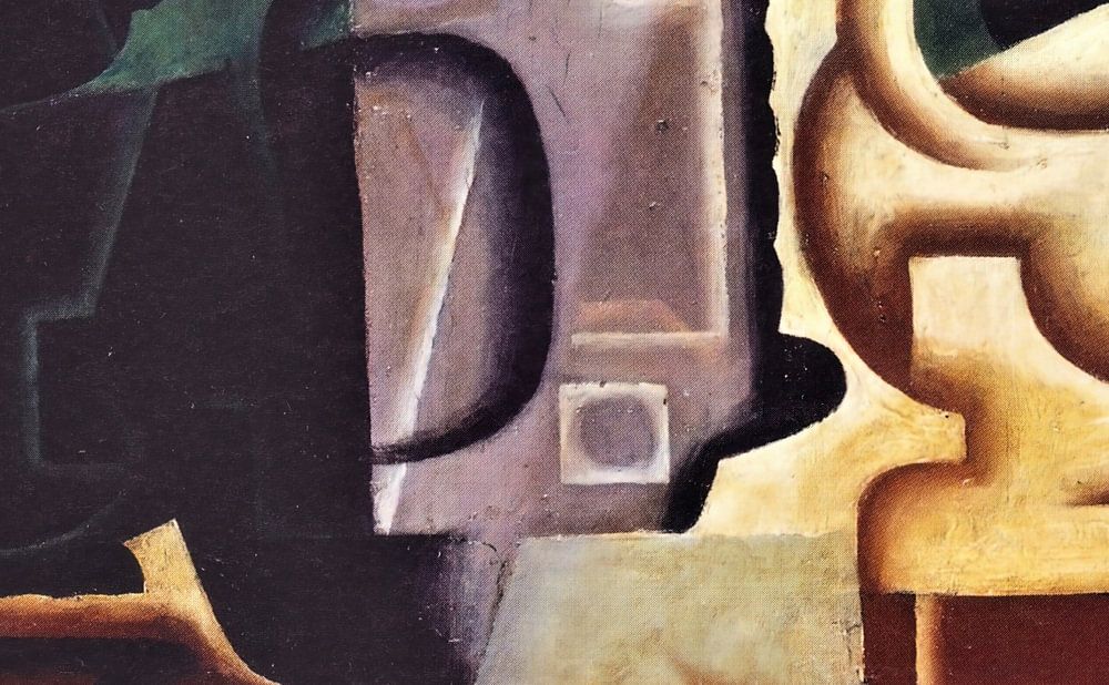 Gris' präziser und komplizierter Stil zeigt sich in den geometrischen Formen und den fragmentierten Perspektiven, die die Objekte auf abstrakte Weise dekonstruieren und wieder zusammensetzen. Die Künstlerin erforscht das Wechselspiel zwischen Flächigkeit und Tiefe und schafft eine dynamische Komposition, die traditionelle Vorstellungen von Darstellung in Frage stellt.